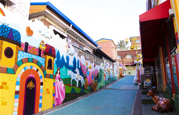 송월동 동화마을은 인천시 중구 송월동 주택가 일대를 중심으로 동화와 애니메이션 캐릭터를 주제로 벽화와 조형물, 다양한 예술작품들이 설치된 마을입니다. 걷는 길마다 동심을 자극하는 알록달록한 그림과 캐릭터들이 가득해 아이들과 가족 단위 관광객에게 인기입니다.