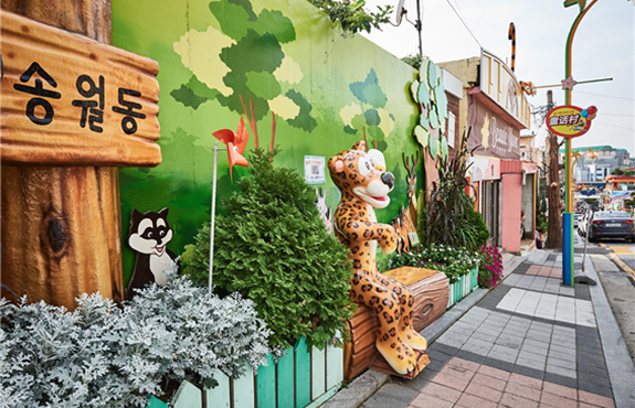 송월동 동화마을은 인천시 중구 송월동 주택가 일대를 중심으로 동화와 애니메이션 캐릭터를 주제로 벽화와 조형물, 다양한 예술작품들이 설치된 마을입니다. 걷는 길마다 동심을 자극하는 알록달록한 그림과 캐릭터들이 가득해 아이들과 가족 단위 관광객에게 인기입니다.